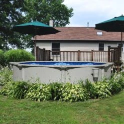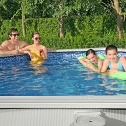 Poolen Àr tillverkad för att kunna stÄ ute Äret runt och bestÄr av extra kraftiga korrosionsbestÀndiga galvaniserade stÄlvÀggar med extra kraftig fÀrgbelÀggning och en unik hÄrd stÄlkonstruktion lÀngs poolen som ger extra stöd och ser till att din pool hÄller sÀsong efter sÀsong. Tack vare dess konstruktion kan du utan problem bygga in poolen i din altan eller soldÀck och fÄ samma lyxiga kÀnsla som av en nedgrÀvd pool.