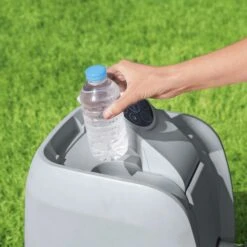 Spabadet Àr vÀldigt enkelt att installera och inga verktyg krÀvs. Det ansluts enkelt till eluttag, har en inbyggd jordfelsbrytare och blÄses snabbt upp med hjÀlp utav ett knapptryck. Badet kommer med en digital kontrollpanel dÀr du kan styra allt frÄn temperatur till massagejets, spapump med integrerat filtreringssystem samt mugghÄllare som gör att du kan njuta av svalkande dryck och snacks.
