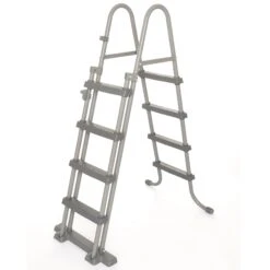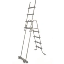 SÀkerhetsstegen Àr byggd med en rostbestÀndig, robust metallram och kan sÀkras i uppfÀllt lÀge för att förhindra att barn kan klÀttra i poolen utan övervakning.