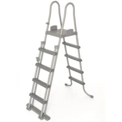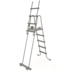 SÀkerhetsstegen Àr byggd med en rostbestÀndig, robust metallram och kan sÀkras i uppfÀllt lÀge för att förhindra att barn kan klÀttra i poolen utan övervakning.