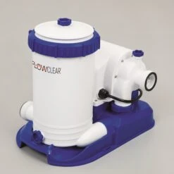 Filterpumpen har en vattenflödeshastighet pÄ 9463 liter/tim och Àr anpassad för ovanmarkspooler med en storlek pÄ 1100-62000 liter. Med filterpumpen följer ocksÄ en utbytbar antimikrobiell filterpatron som kontrollerar bakterietillvÀxten i enlighet med standarden SS-ISO 22196 (mÀtning av antibakteriell aktivitet pÄ plastytor och andra icke-porösa ytor).