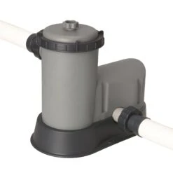 Filterpumpen har en vattenflödeshastighet pÄ 5678 liter/tim och Àr anpassad för pooler med en storlek pÄ 1100-31700 liter. Med filterpumpen följer ocksÄ en utbytbar antimikrobiell filterpatron som kontrollerar bakterietillvÀxten i enlighet med standarden SS-ISO 22196 (mÀtning av antibakteriell aktivitet pÄ plastytor och andra icke-porösa ytor). Denna filterpatron ger optimal prestanda under 2 veckors anvÀndning. Patronen Àr lÀtta att göra rent och för att behÄlla maximal prestanda rekommenderas rengöring av patronen varannan vecka.