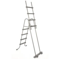 SÀkerhetsstegen Àr byggd med en rostbestÀndig, robust metallram och kan sÀkras i uppfÀllt lÀge för att förhindra att barn kan klÀttra i poolen utan övervakning.