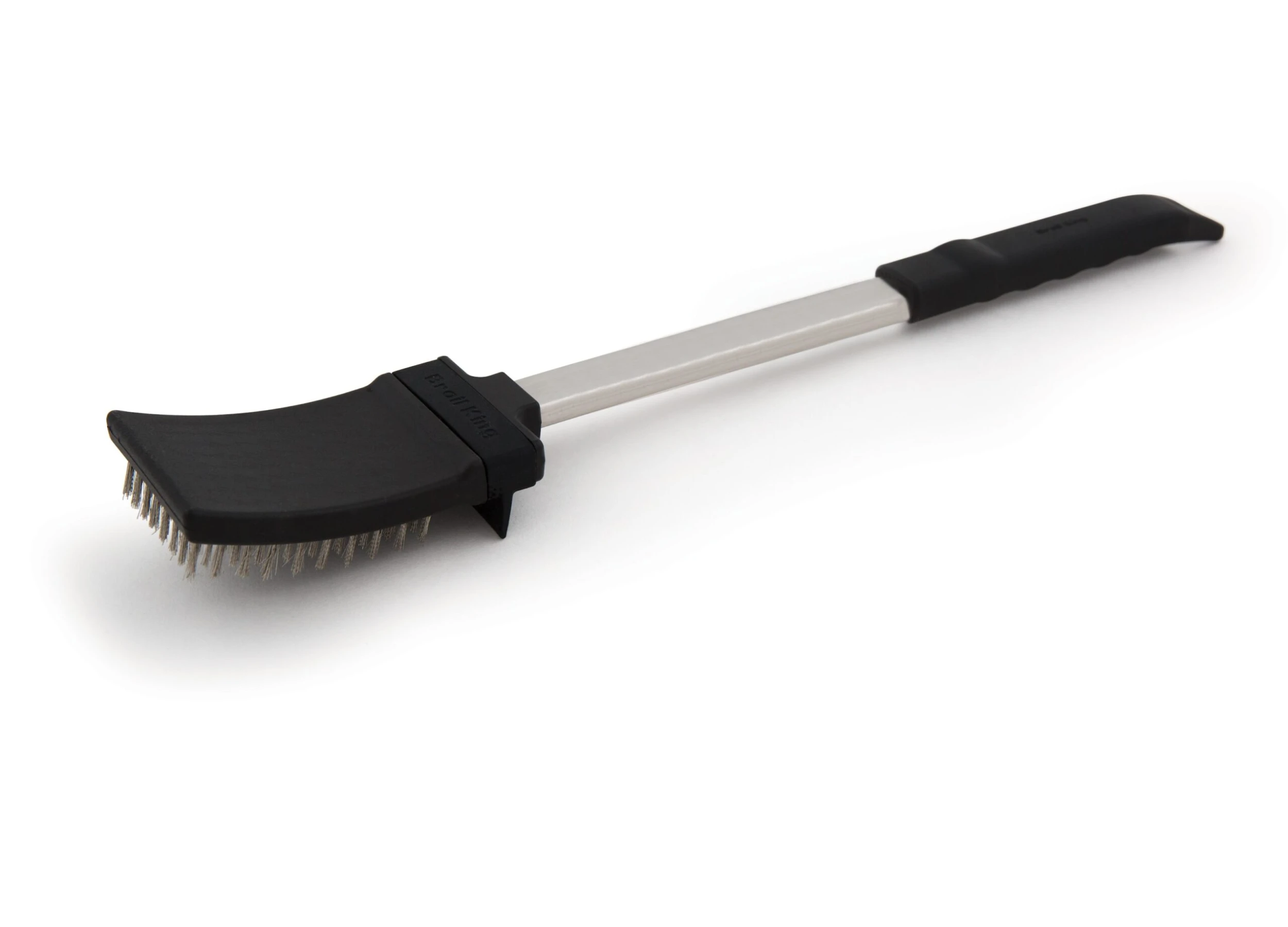 Grillborste Broil King Baron med ergonomiskt handtag i vĂ€rmetĂ„lig termoplast och ett styvt skaft samt borst i rostfritt stĂ„l med integrerat “sprĂ€ttskydd”. 45×6,5x3cm.Ăppet köp i 30 dagar