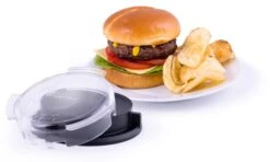 En helt unik hamburgerpress framtagen av Broil KingÂŽs designteam för att ge den perfekta burgaren. BĂ„da sidor av burgaren fĂ„r en försĂ€nkning som hjĂ€lper den att behĂ„lla formen och inte dra ihop sig. Pressen har tre olika presslĂ€gen, en för 110, 140 respektive 170 gram. En mall i botten visar hur mycket fĂ€rs som behövs för respektive storlek. Till denna press medföljer Ă€ven formskurna ark som ser till att burgarna inte fastnar i varandra och om du fryser in dem Ă€r det enkelt att ta ut dem en och en. Du kan Ă€ven köpa till fler ark nĂ€r de som följde med tagit slut. Pressen Ă€r tillverkad i slagtĂ„lig plast som Ă€ven tĂ„l diskmaskin.Ăppet köp i 30 dagar