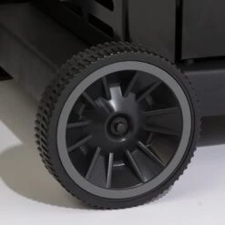 Gasolgrillen 4 stycken hjul för enkel förflyttning och nedfÀllbara sidobord i pulverlackerat stÄl.