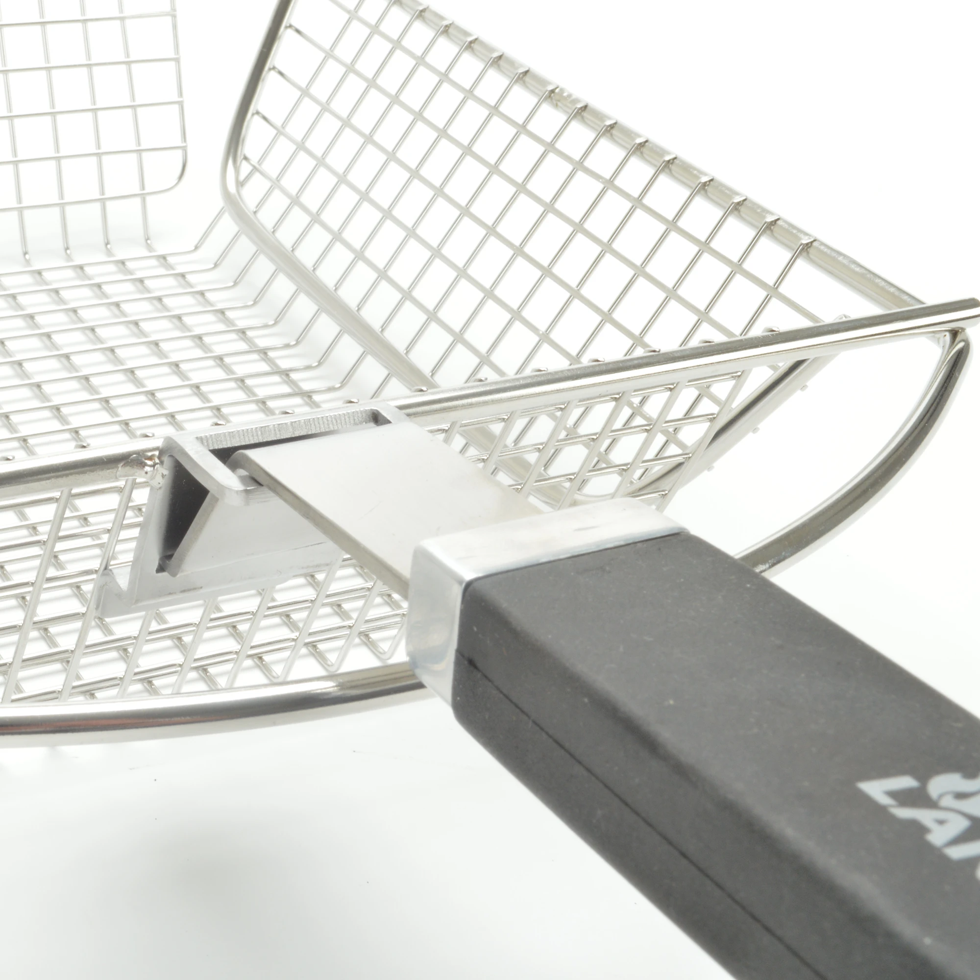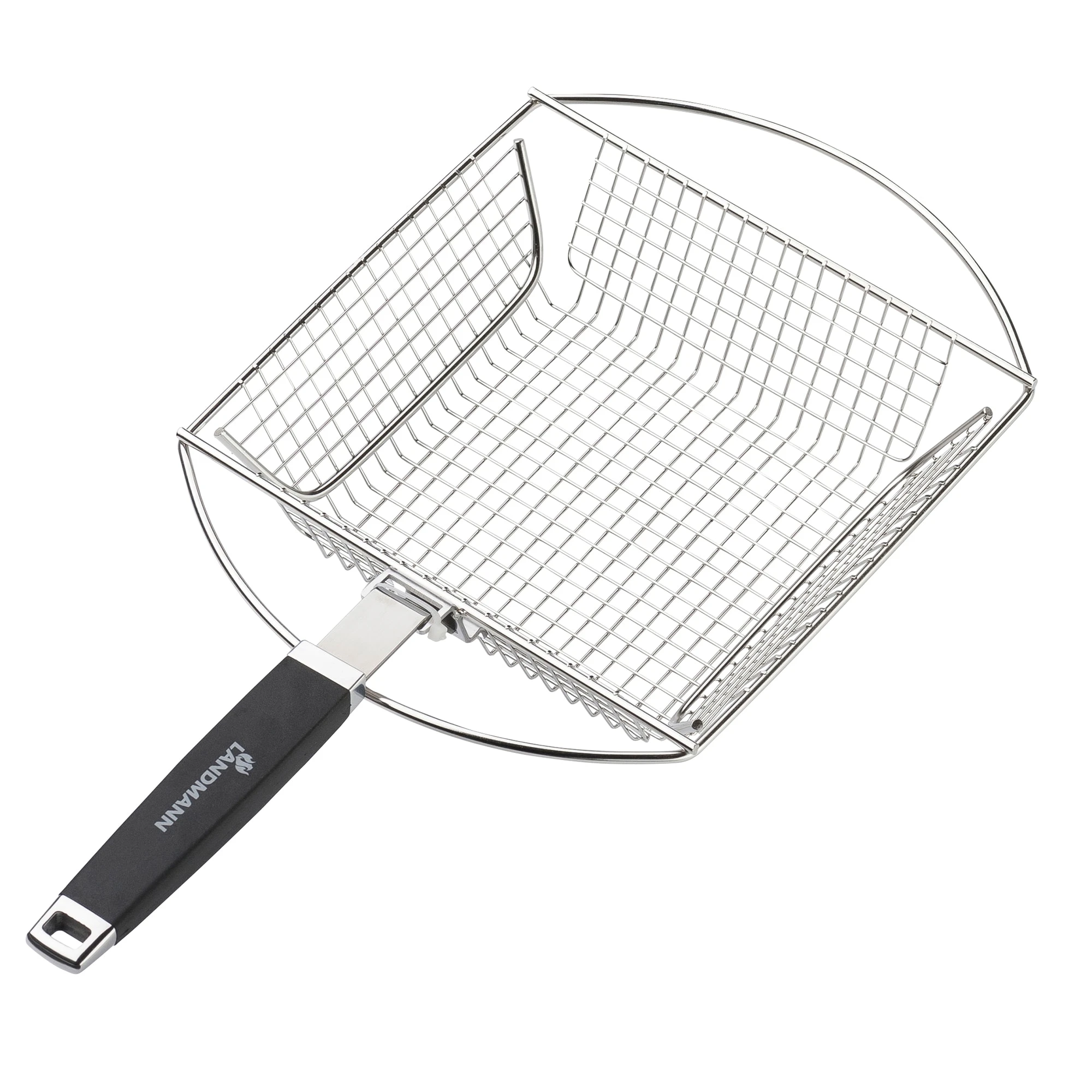 Snyggt designad grillkorg (52 x 25,5 cm) med ett avtagbart handtag för att kunna stÀlla korgen under lock pÄ grillen. För tillagning av exempelvis grönsaker, skaldjur och mindre grillbitar. Tillverkad av rostfritt stÄl.