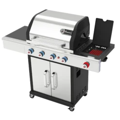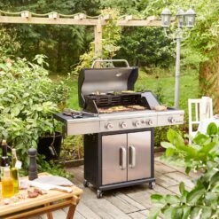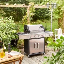 PTS-system och galler av kraftigt gjutjÀrn ger en jÀmn vÀrmefördelning över hela grillytan. God vÀrmeisolering tack vare dubbla plÄtar i locket och möjlighet till förvaring i skÄpet med dubbla dörrar.