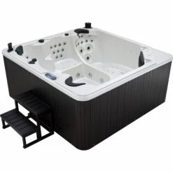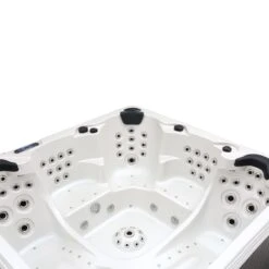 Detta spabad Ă€r utrustat med 108 rostfria munstycken. Av dessa Ă€r 8st 3″ vattenmunstycken, samt 62st munstycken 2-2.5″ samt 38st munstycken för bubblor.