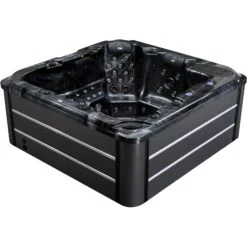 Detta spabad Ă€r utrustat med 111 rostfria munstycken fördelat pĂ„ 1st 5″ led-jet, 4st 4″ led-jets, 8st 3″ led-jets, 79st 2″ jets samt 19st munstycken för bubblor. Alla vattenjets har massagefunktion och Ă€r rostfria.