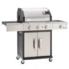 Denna kraftfulla gasolgrill med en effekt pÄ 17.5 kW kommer med fyra huvudbrÀnnare, en hylla under kÄpan för varmhÄllning, roterande grillspett och en grillskÄl för fettuppsamling.