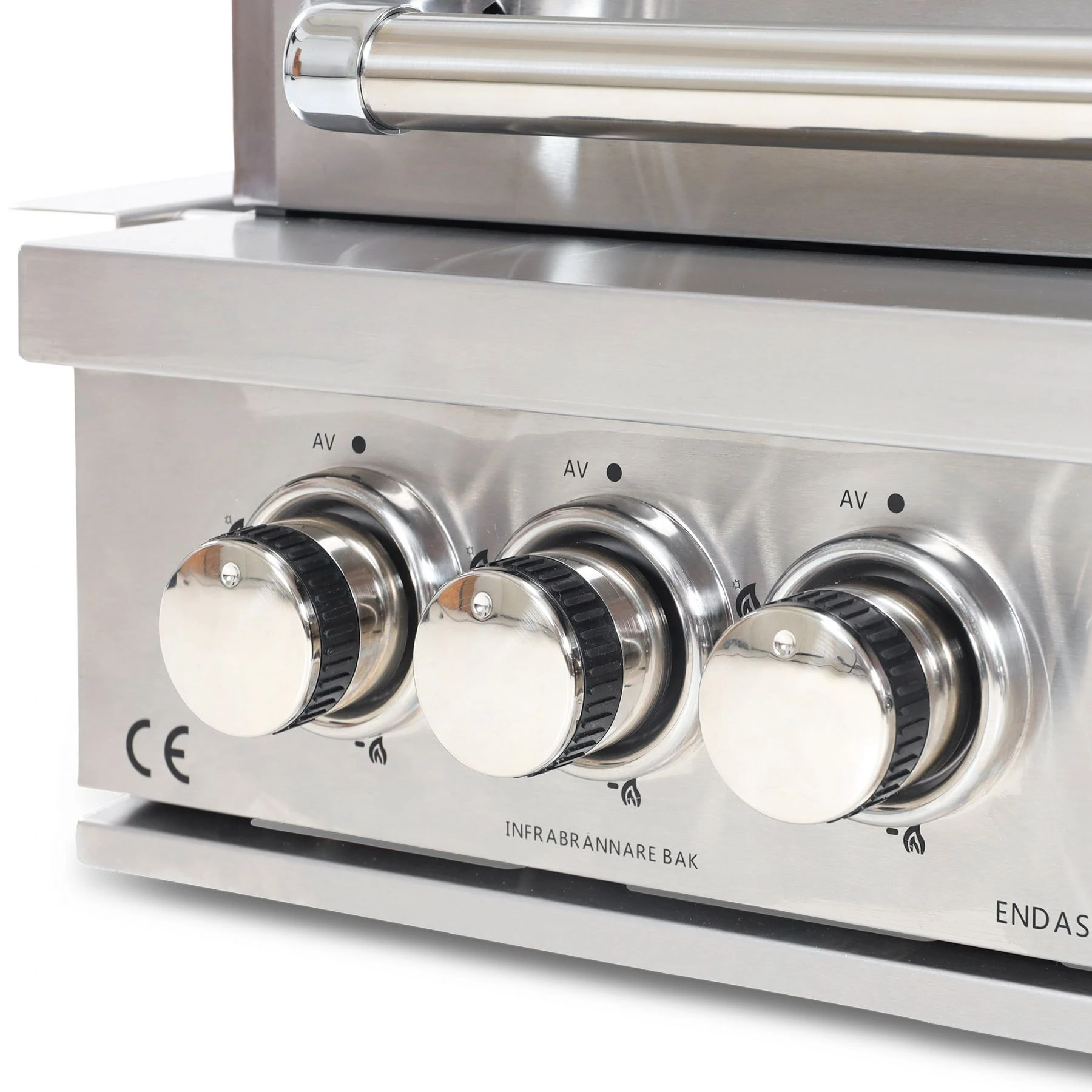 Förgyll de varma sommarkvĂ€llarna med denna lyxiga gasolgrill för inbyggnad â helt i rostfritt stĂ„l! HĂ€r finns en vĂ€l tilltagen grillyta pĂ„ 70 x 45 cm.
