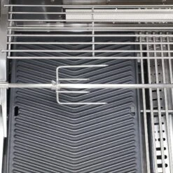 - Denna grill har ett tjockt grillgaller pĂ„ 8 mm i diameter av hĂ„llbart rostfritt stĂ„l. Denna tjocklek och kvalitet pĂ„ galler Ă€r vĂ€rt ca 1300 kr, vilket Ă€r ungefĂ€r 10 gĂ„nger sĂ„ mycket som de betydligt vanligare âstĂ„ltrĂ„dsgallrenâ eller V-vinklade emaljerade gjutjĂ€rnsplĂ„tar, som anvĂ€nds av bĂ„de billigare och dyrare mĂ€rken pĂ„ marknaden. De tunnare gallren föredras av tillverkarna eftersom de inte Ă€r lika kostsamma, men hĂ„llfastheten Ă€r betydligt lĂ€gre och de hĂ„ller i regel inte mer Ă€n en sĂ€song.