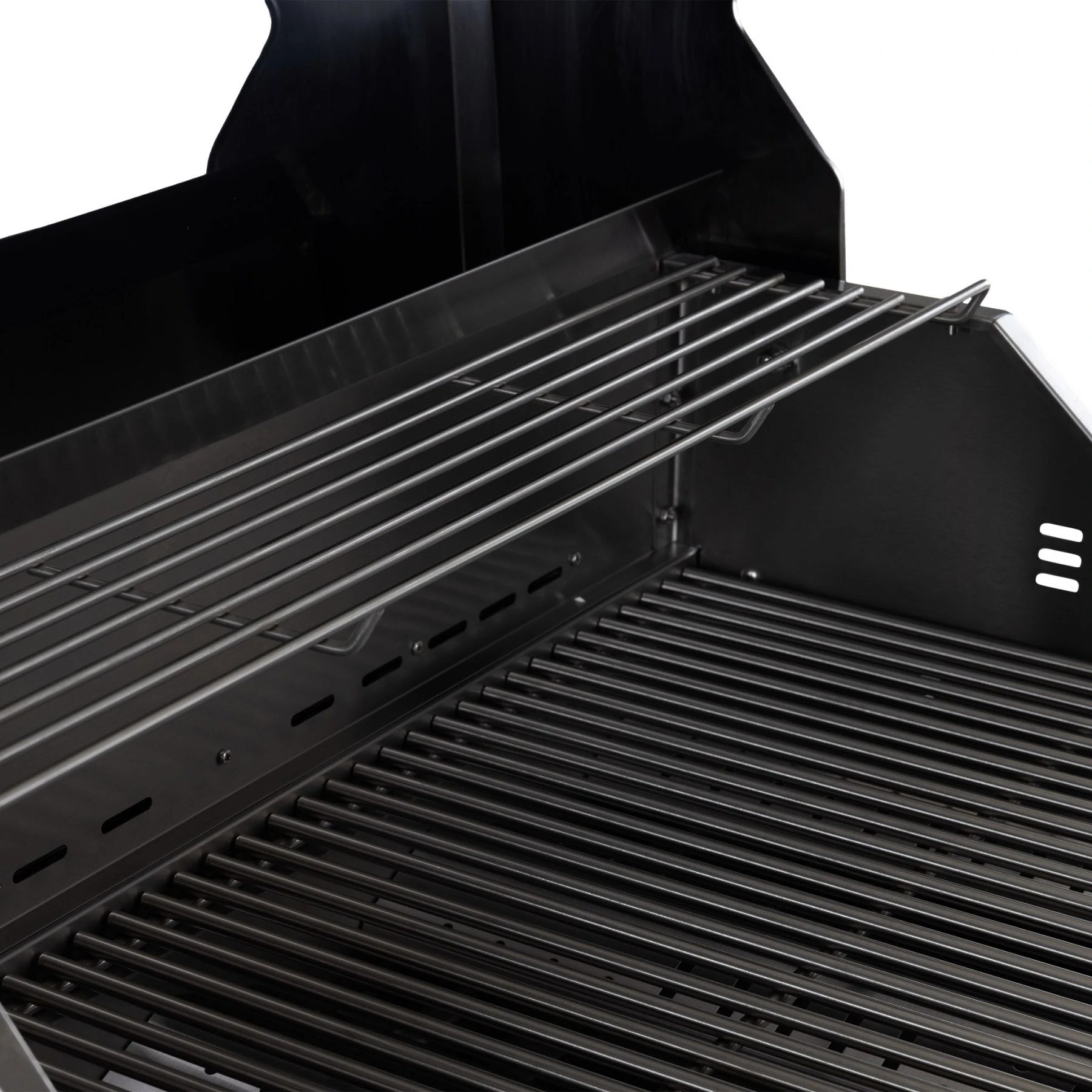 - Locket till grillen har dubbla lager. Ett yttre lager av rostfritt stÄl, och Àven ett inre av rostfritt stÄl med en luftspalt emellan. Detta gör att grillen blir bÀttre isolerad och att mer vÀrme stannar i grillen. Dessutom blir inte locket lika varmt som pÄ vanliga enkelsidiga lock (om nÄgon rÄkar vidröra locket, Àr risken att brÀnna sig betydligt mindre).