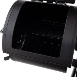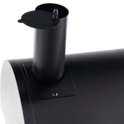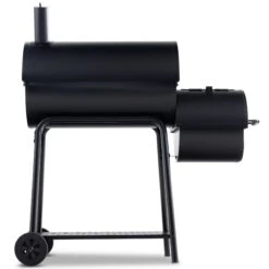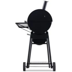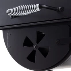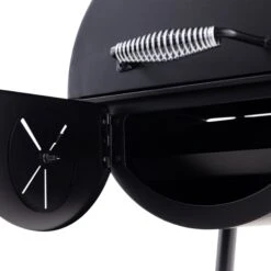 - Sidoröken har en ventil pÄ sidan, och sjÀlva kolgrillen Àr utrustad med en skorsten dÀr röken försvinner ut. Rökytan Àr 32 x 37 cm.
