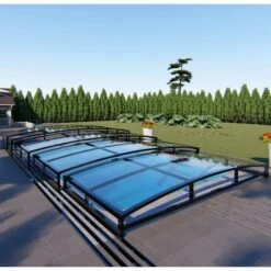 Skjutbart pooltak för pool 4 x 8 m med teleskop-konstruktion i svart aluminium
