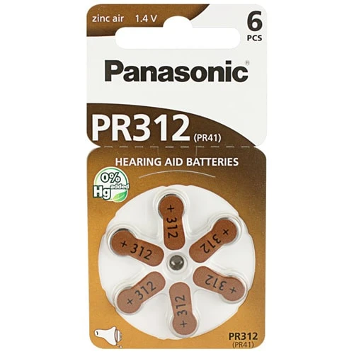 6 stycken (1 ark) Panasonic batterier för hörapparater – typ 312 / PR312